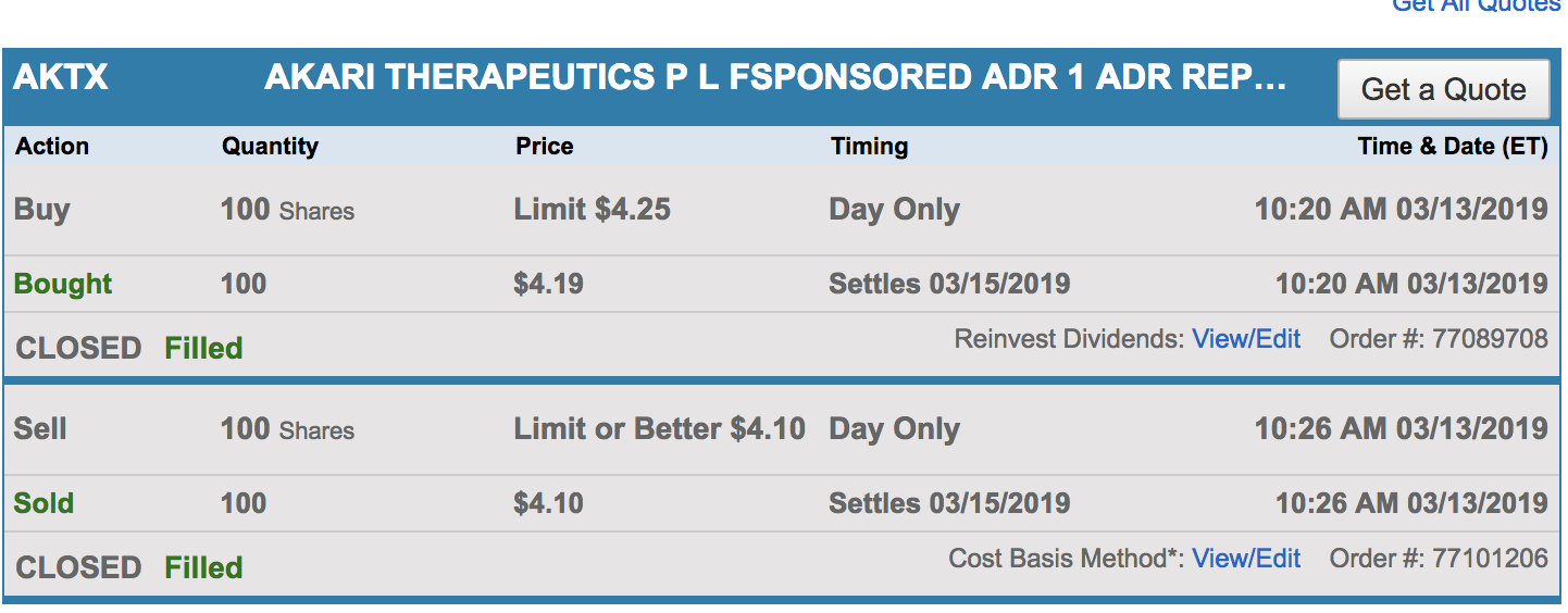 This was dumb. I saw it squeeze around 4.20 and was upset I did not make as much money from my last trade of this, so I emotionally bought. Saw it drop to 4.00, then back up to 4.20, and then have a hard time getting past 4.20 again, so as soon as it dropped toward 4.05, I cut my losses quickly. It ended up shooting back up toward 5.00, but I have to learn from this. Should have sold half my initial position and held the rest with lower risk.