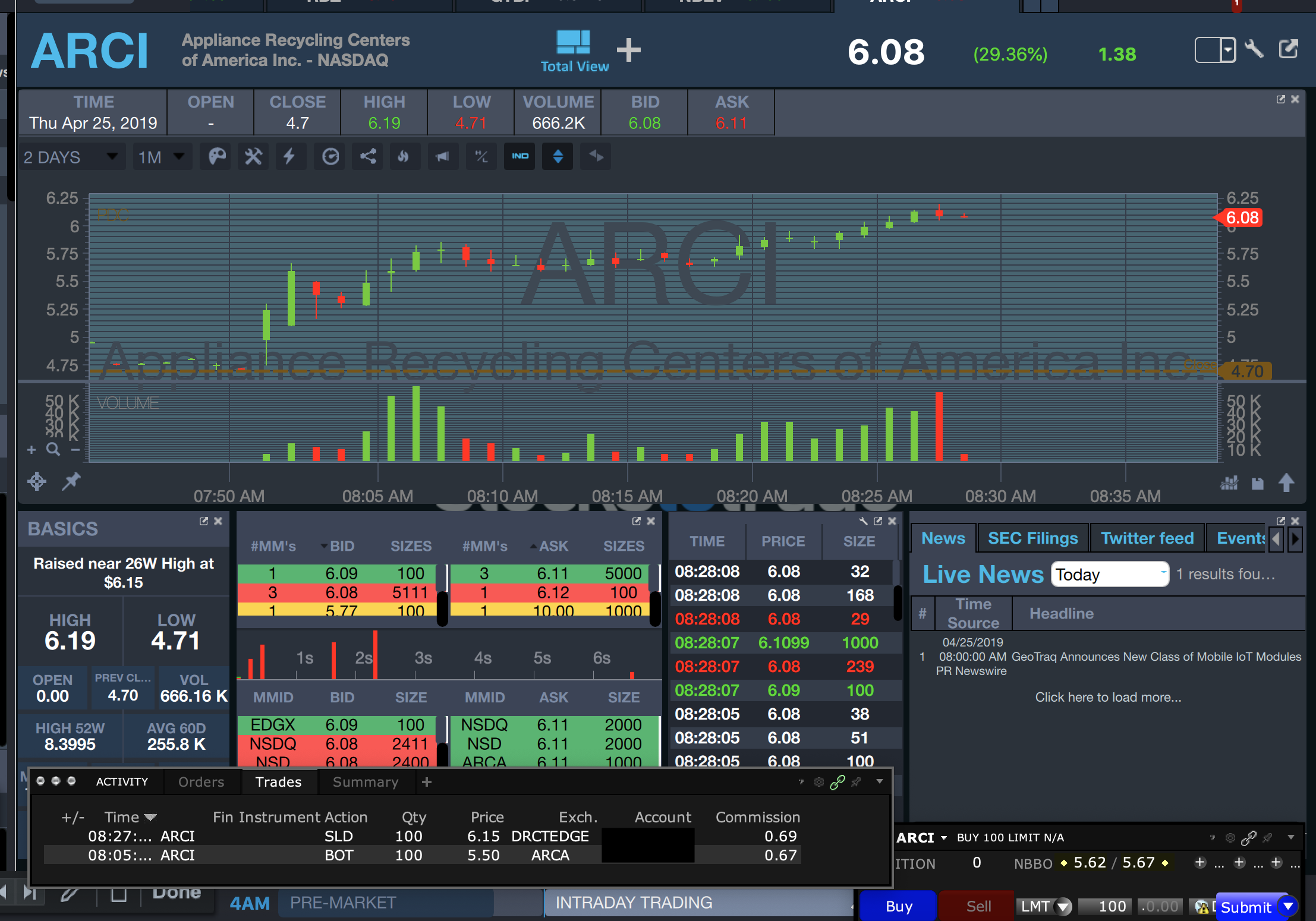this got news so i watched it and i tried to get in earlier but missed my entries in 5.20s 30s and 40s, got in 5.50 bc i knew this could go big considering the low float and recent r/s+news i almost bought 200 shares but buying 100 caused me to be more comfortable. i sold once the momentum started to turn after i was up 10% i knew it would most likely go higher, still working on patience