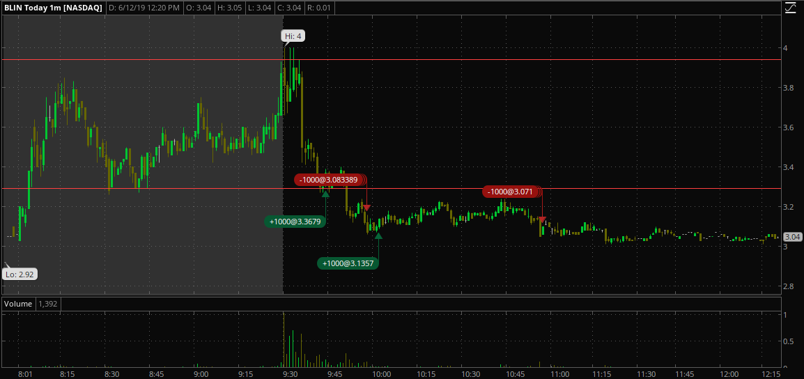 Big crack as I tried to cut loss. Covered lower than wanted. 2nd entry was ok. I was stupid and didn't lock the $100+ in. I was thinking it would squeeze higher, giving me a chance to close >= b/e, price action did not agree. Would've got my loss back to an acceptable level on the day, but got stubborn. I Fell victim to a bear raid. At the end of the day it was MY trade management that failed me.