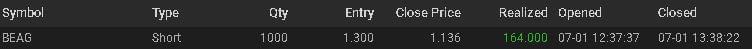 Entry comments: Shorted this pump as it cracked big support level at 1.30. Looking for .20-.30 downside while risking .08 to hod. Not looking to hold o/n.