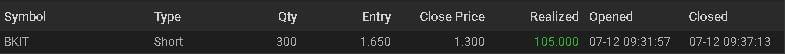 Shorted this pump for quick predictable gains. Small size bc not very liquid and I am just learning/testing pump shorting. 2 things told me this might be dead: 1)Couldn't make a new high yesterday after making a high everyday for 2 weeks, and 2) big gap down today after topping action. Took quick and predictable part of the move. Solid gain on small size.