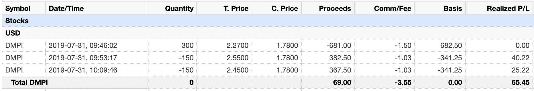 | Exit | 7/31/2019 | 2.50 |