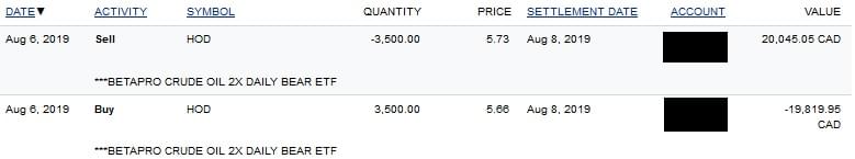 Used oil 2x bear ETF for trade so didn't have to short (which is 2x higher volatility than the oil price). From TheChartGuys, oil was in an inside candle from previous day. Breakout of 55.59 is bullish and breakdown of 54.22 is bearish. Oil broke below 54.22, so I entered my position. Had a mental stop loss if this was a false breakdown. Oil fell further and past below premarket lows so held on longer before selling as the price began to be choppy. Sold at oil price of 53.70 for a nice single.