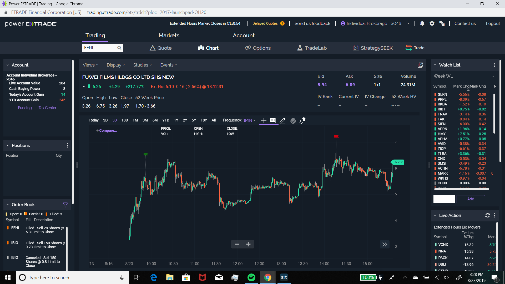 Exit comments: Well it wasn't a bad idea after all! Held on until I saw the stock reach towards the day high once again after lunch like I figured it would. A lot happened for it today with the news of trade war tariffs between the US and China. But a small position created a small profit. Still learned to be careful about jumping in on a stock that's already up so high in %