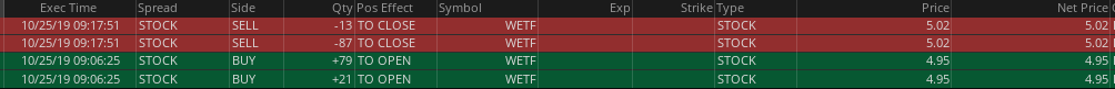 $WETF announced earnings today, they beat the expected 0.05 to 0.06 EPS. I thought i was a good option. Not enough volume. I don't know if is going to go higher on the day ( last month it was on the ~5.60). So far i think it was a good entry but i should have held till 5.07, but then again not enough volume