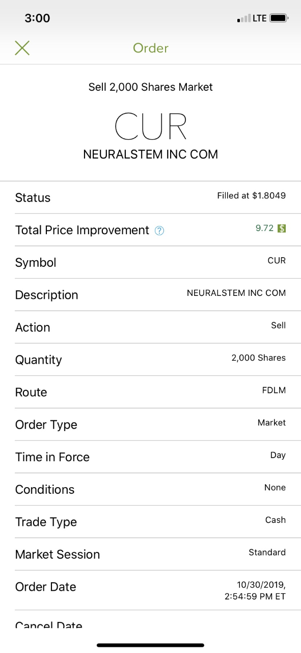 | Exit | 10/30/2019 | 1.80 |