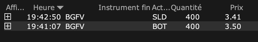 I tried to buy the afternoon breakout (put a stop buy at 3.50 - multi week breakout too), got a good execution at 3.499, but the breakout was wick and got out at 3.41 (use a stop loss at 3.45) which is a very bad execution from my risk... I should maybe stop to use stop loss and try mental loss instead but I was scary the stock would go down further...) THEN HUGE MISTAKE as I didn't buy the second breakout and the stock spiked to 3.90 ish !!! Should have stick to the initial plan