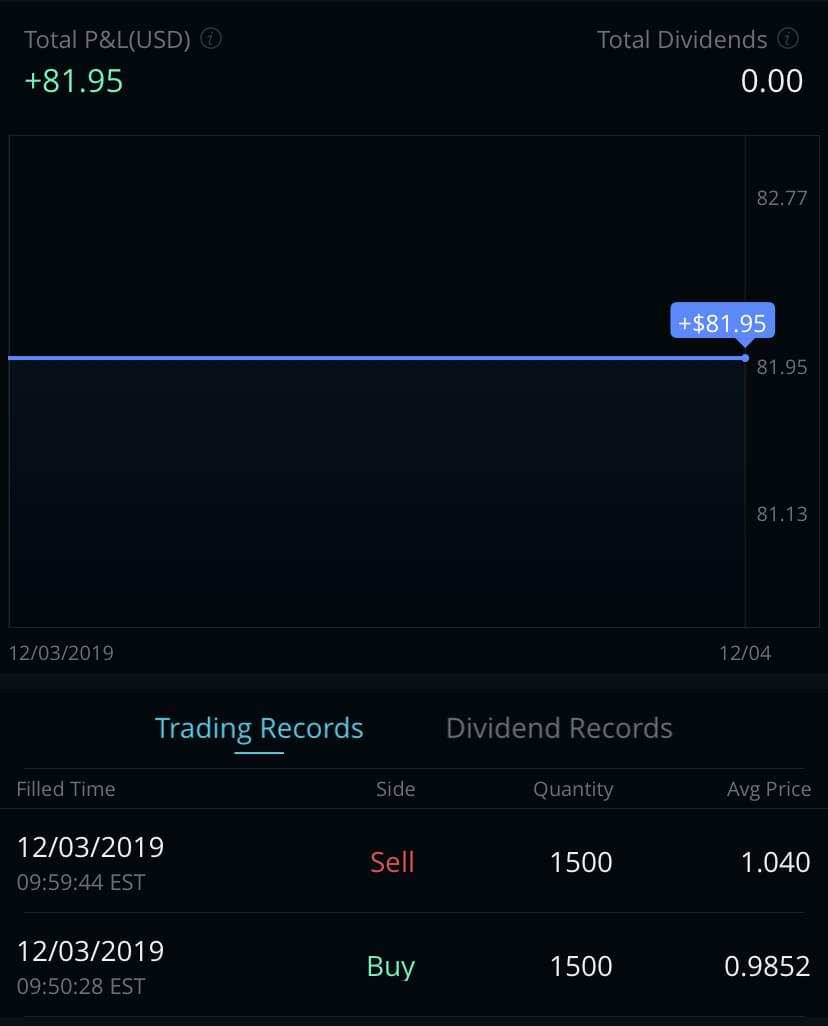It could have been a bigger winner but I limit order at 1.08 never filled thanks Webull but regardless happy I made back my loss from Monday