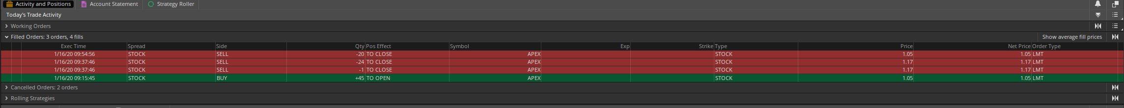 PM gapper, news of a sister brand's colab deal. Bought PM to test PM orders. 45 shares. On open, dip then bounce that broke PM high. Made HOD $1.25. Sold 25 shares at $1.17 for 11%+. Held 20 shares. Price retested $1.20, failed. I thought it was consolidating at PM High level to then try upwards again. Sold last 20 shares at $1.05 which was my entry point. **Green trade. Figured out that I can execute AH/PM orders. Trade hypothesis was decent. However, poor discipline.