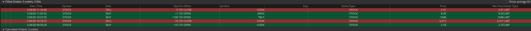 Recent big % gainer that gapped up over 45% on Monday. Tuesday had a first red day. Looking for a morning panic dip buy. Price dropped over 17% in the first 10 minutes, nice panic / dip. Bought 15 shares @ $2.10 Sold 10 @ $2.21 on first failed VWAP break. Sold last 5 @ failed intraday resistance break @ $2.31.