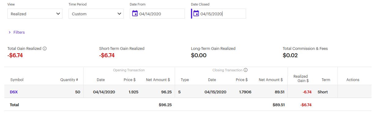 Entry comments: Technical Analysis: Swing trade that closed near day high of the day with green candle. Fundamental Analysis: There was news on this day. Plan: Sell into possible morning supernova or morning spike for $2.50 per share. Already have a $3.25 profit right now. Result: Should have take the $3.25 profit during premarket. Stock never had a chance to spike.