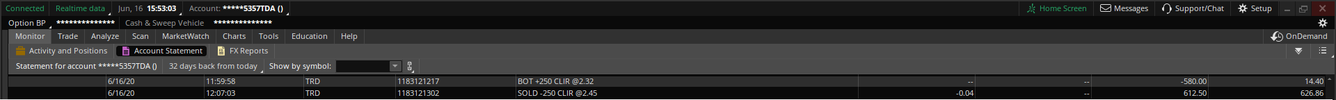 3rd time to play on day. Watched the chart, confirmed numbers I saw on the 1 minute chart with the 5 minute chart and took position. Just like Tim Sykes I trade scared. Took my little single and finished the day due to the PDT. Was a really good entry as stock ran about 42%. Hopefully I will get braver as I learn more.