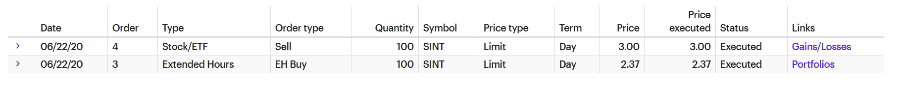 Stock had news in Covid section. Bought it premarket in hopes to close in before market open at 9:30. I knew this probably won't last too long. Used Tim's advise of setting the target price and exited. Stock only climbed up to 3.13 today. This was my first official gain using ETrade.
