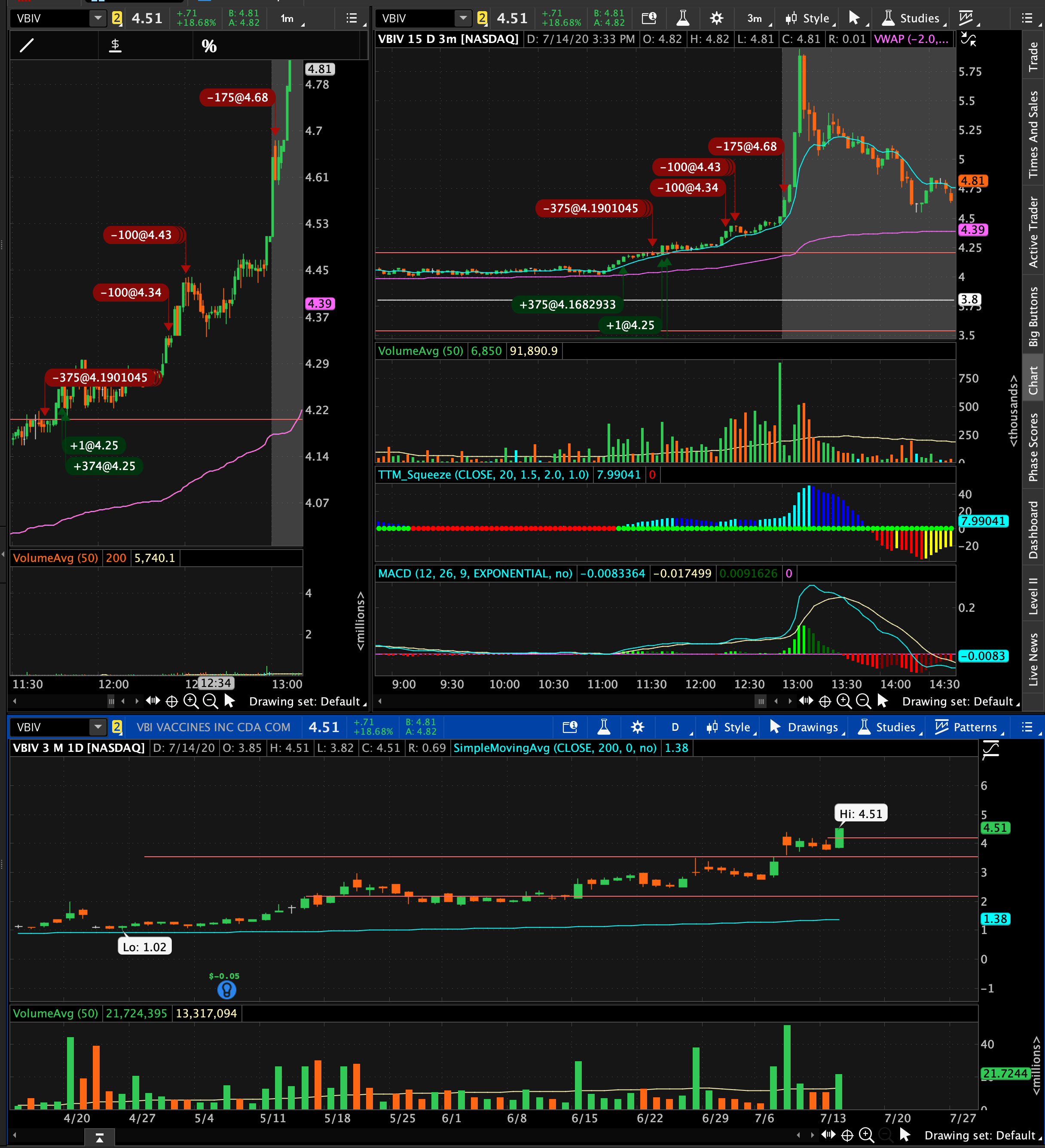 First entry was 4.16 but didn't like the price action so I exited for a scratch. Reentered @ 4.25 on breakout of 4.20 resistance. Stop @ 4.20. Nice increase in volume as well as putting in higher lows. L2 was getting hits on the asks. Sold 1/3 @ 4.34 as we broke into 4.30's. Felt a bit top at 4.40's, so took more profit. 1/3 to hold into close. Last 175 @ 4.68 shares into strength in the a/h.