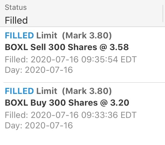 Forced myself to not trade for quite some time due to losses as a result of not having and/or not following a plan. Today decided to start small. Sticking to my plan no matter what. Morning Panic - Plan was to wait until dip goes to pre-market low of $3.23. Actually able to buy at $3.20. Sold a little over pre-market high for a quick win. Having a plan works!!!