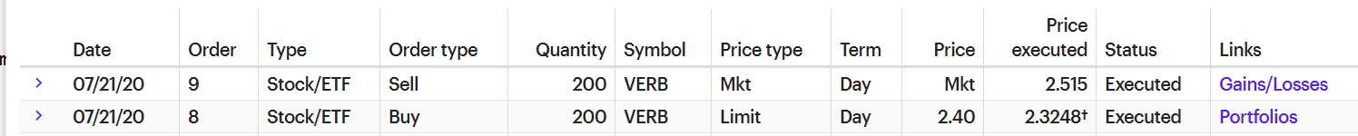First decently executed trade. Tim alerted it at $1.40, but it moved really quickly so I couldn't get it until it reached $2.32. I am using supernova alerts, but I really should download StocksToTrade so I can get this info even earlier. I chased an already high stock which is kind of bad, but at least I profited
