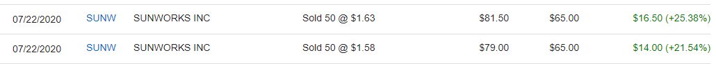 stock was breaking June highs over 1.28, was having a hard time to break 1.37 but held the b/o at 1.30 , so I pulled the trigger and got filled, it held the b/o pretty decent , got out once it hit my target price, sold at 1.63 and 1.58 . 3:1 r/r