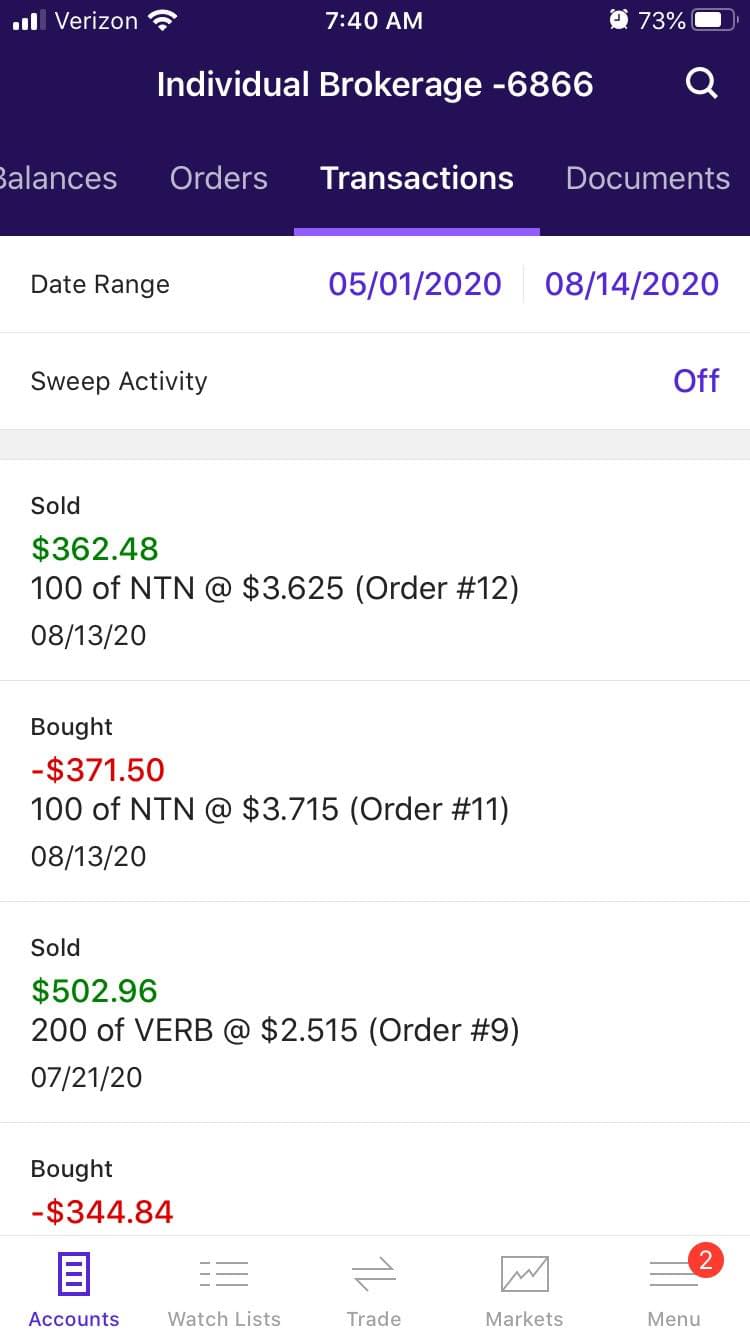 This stock eventually doubled, but it was choppy and I got scared out. It was a small loss, but not a bad trade because I cut losses quickly. It was starting to flatten out when I got it. Maybe I should only buy stocks when they are clearly going up. The uptrend was slowing down and then flattening out when I got in. I'm hesitant to say this was a "good trade" because of this.