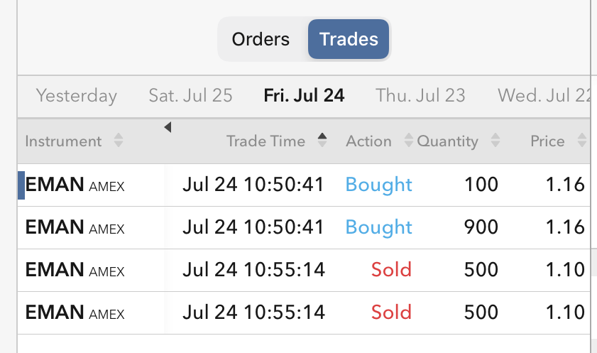 bought the b/o over 1.15 and it went to 1.25 then came back down under 1.15 which i didn't like after it took so long to b/o. it then dropped under 1.10. i set my limit to 1.08 and it got executed at 1.10 on its recovery up. need to work on my patience. as the news was good and it was such a quick pullback i should have known to average down on a fast pullback