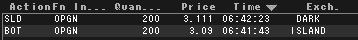 tried to dip buy this, then couldn't get above 3.12. I like playing careful as I can always get back in if the price action keeps me interested. I was very uncomfortable with the level 2 as I'd see all buyers and sellers come in at the same time and it just bounces in a section for a bit. then makes a drop or a jump 5-10 cents then does it again. i guess in short not a clear enough "dip"