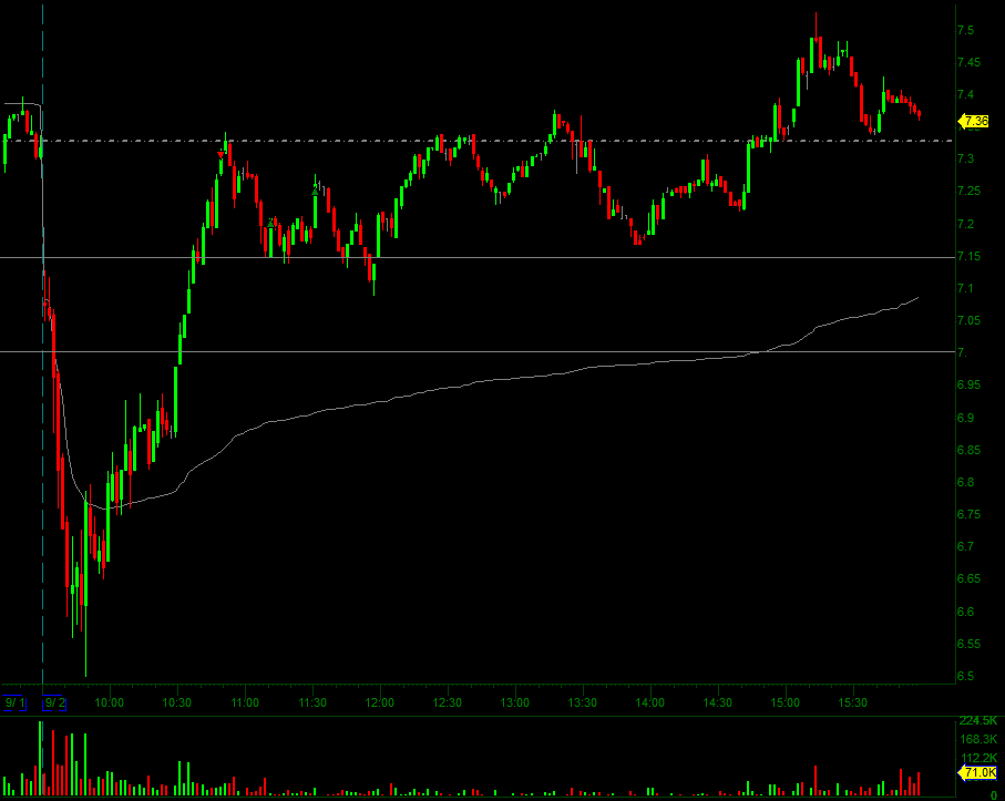 Over extended move in the stock. Played the short using previous days resistance and previous close as risk level. The stock did not drop as much as expected, exited for small gains Still not feeling full confident with strategies and still trying to find a pattern that I am comfortable with but I am learning a great deal by observing the markets. So many plays passing me by but at the moment I am happier to take things slowly