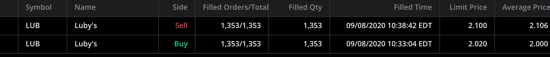 $LUB was the only play happening today i found through my own personal screener after another red day on the market with big sell offs. The stock had news and lots of volume. I had watched it bounce off of VWAP a few times in the morning and decided to get in as the RSI was low enough and I knew I had the room for at least 5%. I had toyed with the idea of looking for more but decided against it on my first morning of REAL trading. Decided to not be greedy and take my small profit of 5%