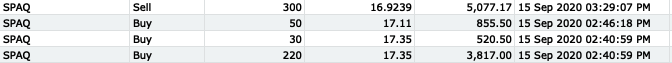 | Exit | 9/15/2020 | 16.92 |
