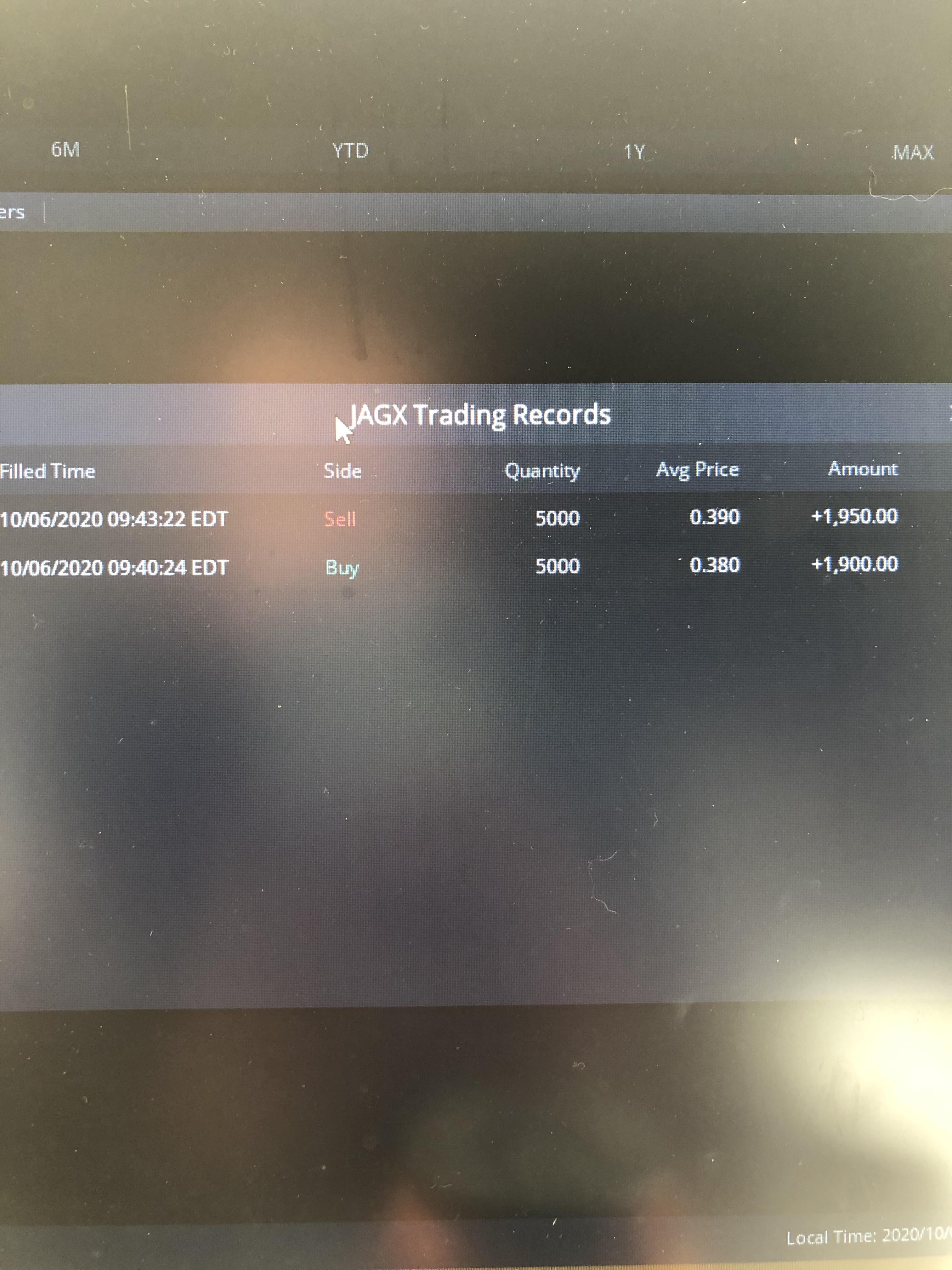 Early morning spike off some good news..tried to enter this trade at 0.370 but it was going up to fast. able to execute my limit order for 0.380 and got out at 0.390. Out a bit early but stock was moving to fast, and made a high of 0.3990 before dropping. so i guess i wasnt that early on my exit. but made $61 in 3 minutes so im happy.