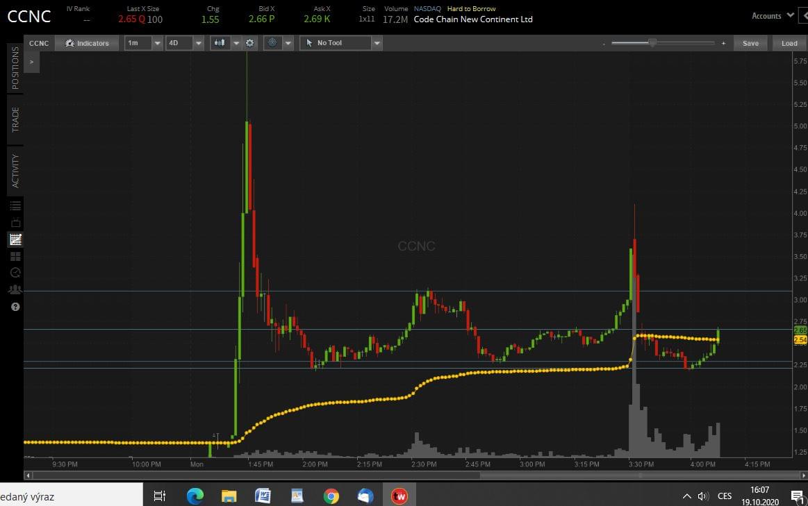 after market opened there was a quick massive spike and suddenly the same drop, so huge that halted for a while. Just waited for a dip. There were 2 support levels, at 2.32 and 2.22. Jump into long too early because the bottom was the lower support area, but then spiked up, but took a few minutes, so patience paid off. I could have hold 2 minutes longer to get to 2.82, but anyway... Quite nice play.
