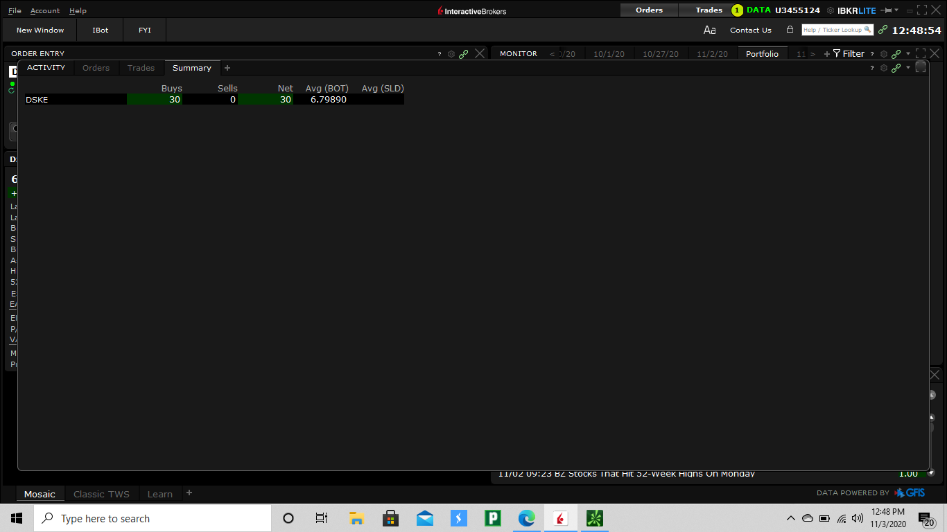 I shorted this first red day at the end of the day it was fading but it closed somewhat a little stronger, I held over night, hoping for a morning panic, it went up to the low 7s but I waited most of the day because it had very low volume, it got at low as 6.46 but I didn't take profits, I didn't want to scape, stayed green on the day, all in all okay trade I got out because it has consolidated for two hours and I got scared out because there might be a short squeeze, got out small loss!!!