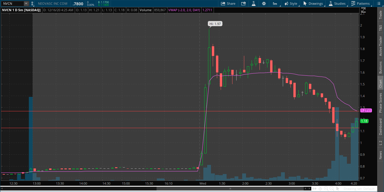 Nice little premarket single. Stock gapping up with big volume and positive news. I bought on the dip as it looked to start reversing back up with volume. I sold into strength. Stock recently had an offering and also recently put in to register more shares so I didn't want to overstay my welcome. Sketchy trade but I had my risk set tight.
