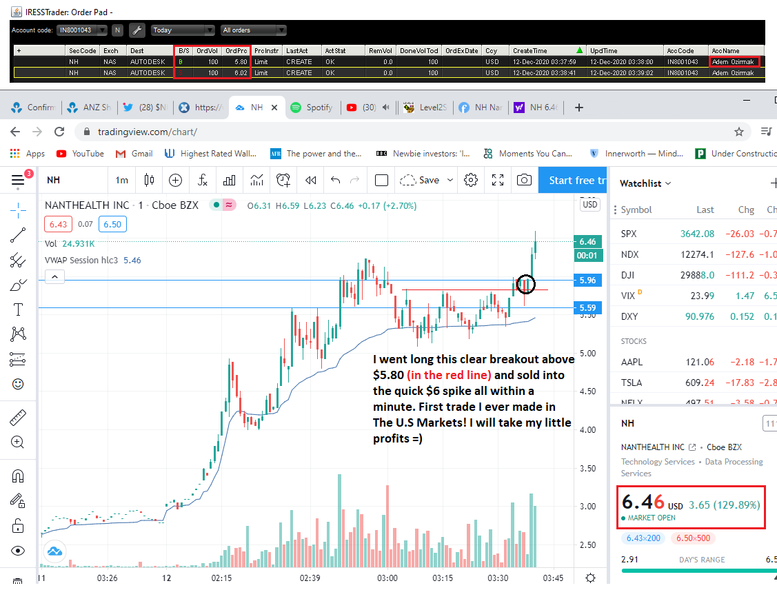 First ever trade, no Level 2 so small size and focus on taking singles. I recognised it had churned about 20M from it's 45M share count rather early Potential 1st Green Day with shorts squeezing was a Long play for me quick in and out Exited prematurely but exact to my plan by setting a limit order slightly after $6 to ensure a strong likelihood of a fill