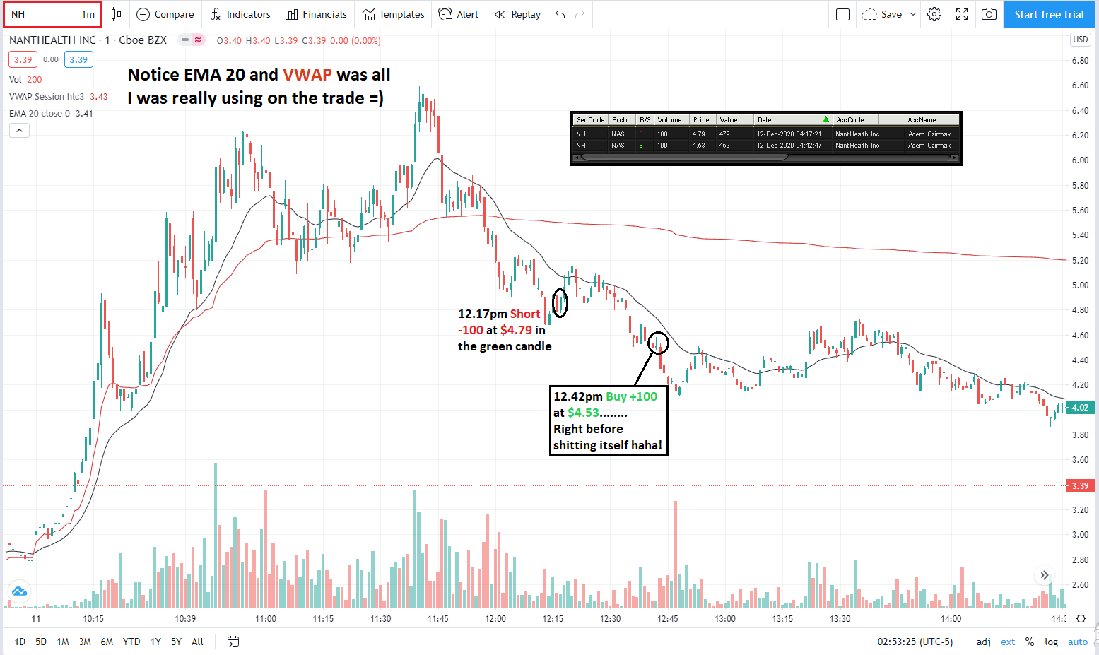 Stock started to lose it's gains after a decent intraday run-up. Broke the VWAP and sellers seemed strong so I took a small size short and rode it down closing moments before my target levels were actually reached which were $4 whole round number level. Makes it hard on my end without proper Level 2 for the time being & trading in Australia is a tough time zone indeed! +$26 Profit locked in on the second trade nonetheless.