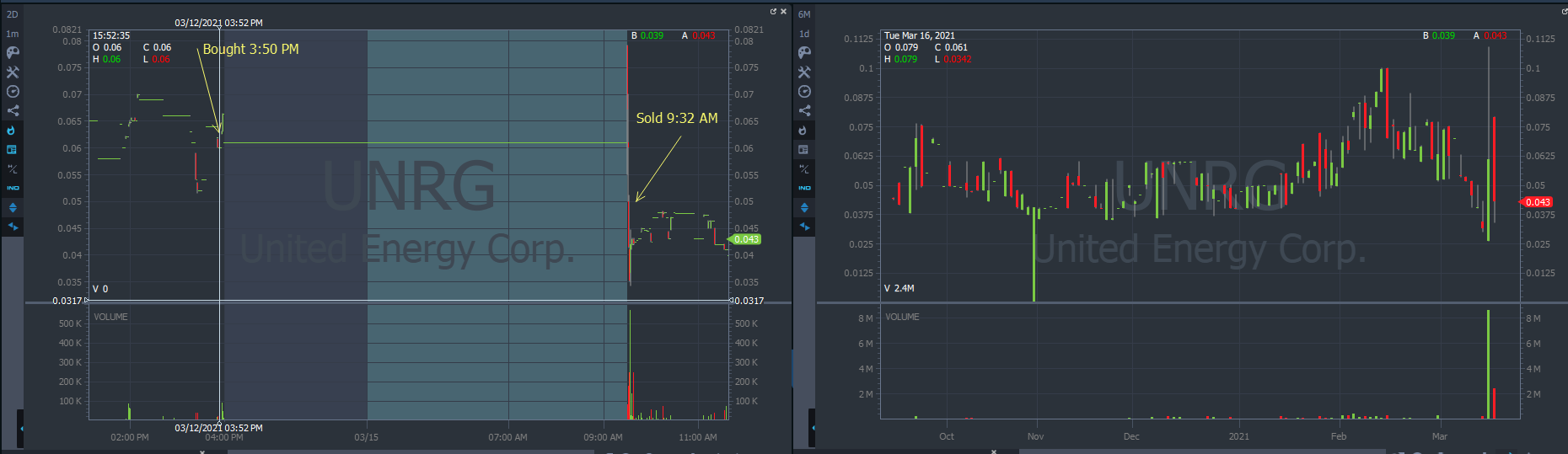 Entry comments: One of the Top % Gainers on the Day. Very speculative 1st green day OTC play. I ran out of day trades and bought this into the close hoping for a gap up Monday morning. Only thesis that I have going into this is that everything seems to be spiking so I was hoping the hype would continue Monday.