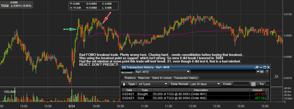 Dumb sub penny chasing trade on my part. Brake even, out for commission cost.