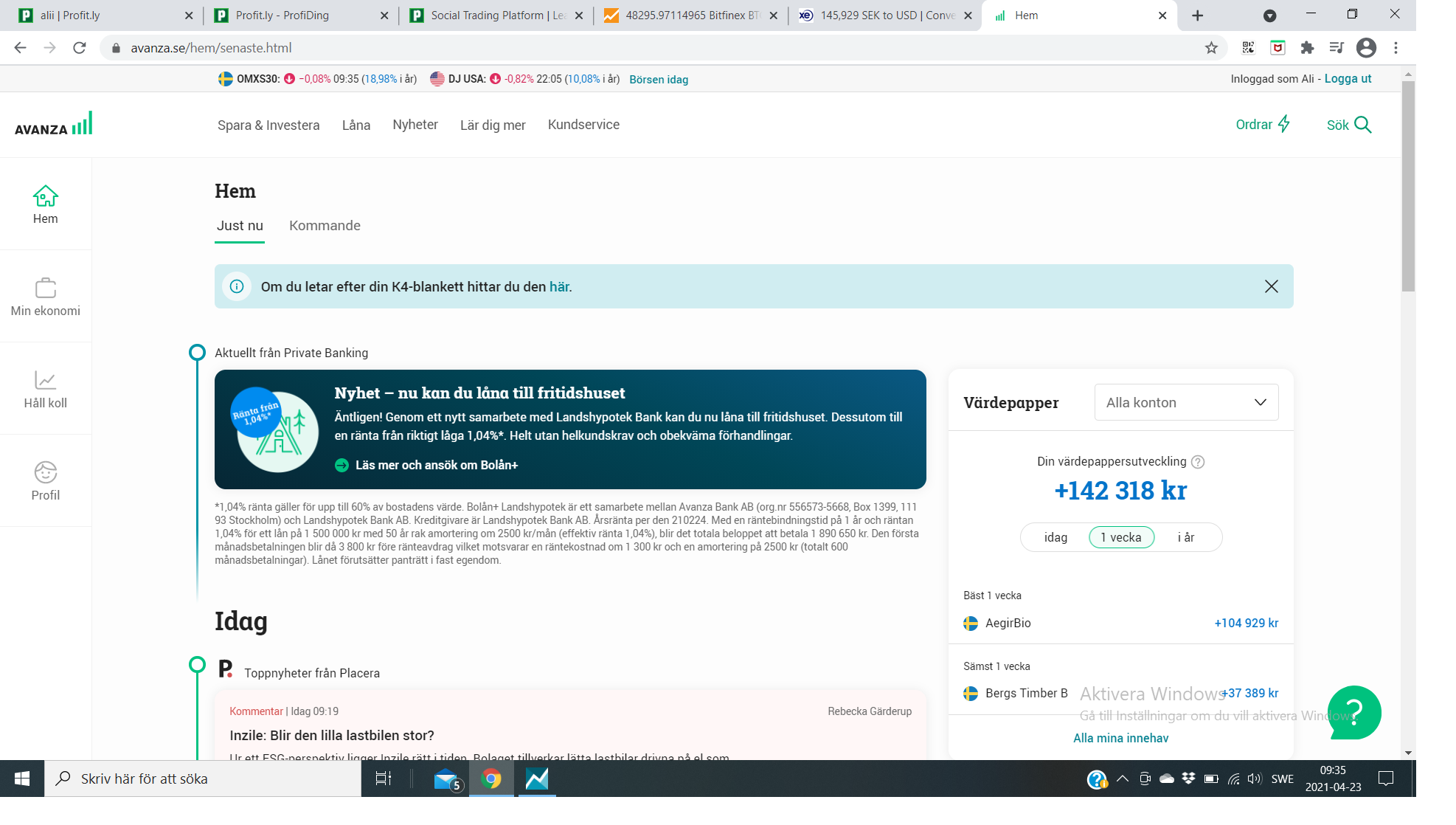 The picture to proof my trade is with my loss 4k loss on it so im up +104929kr (13k)