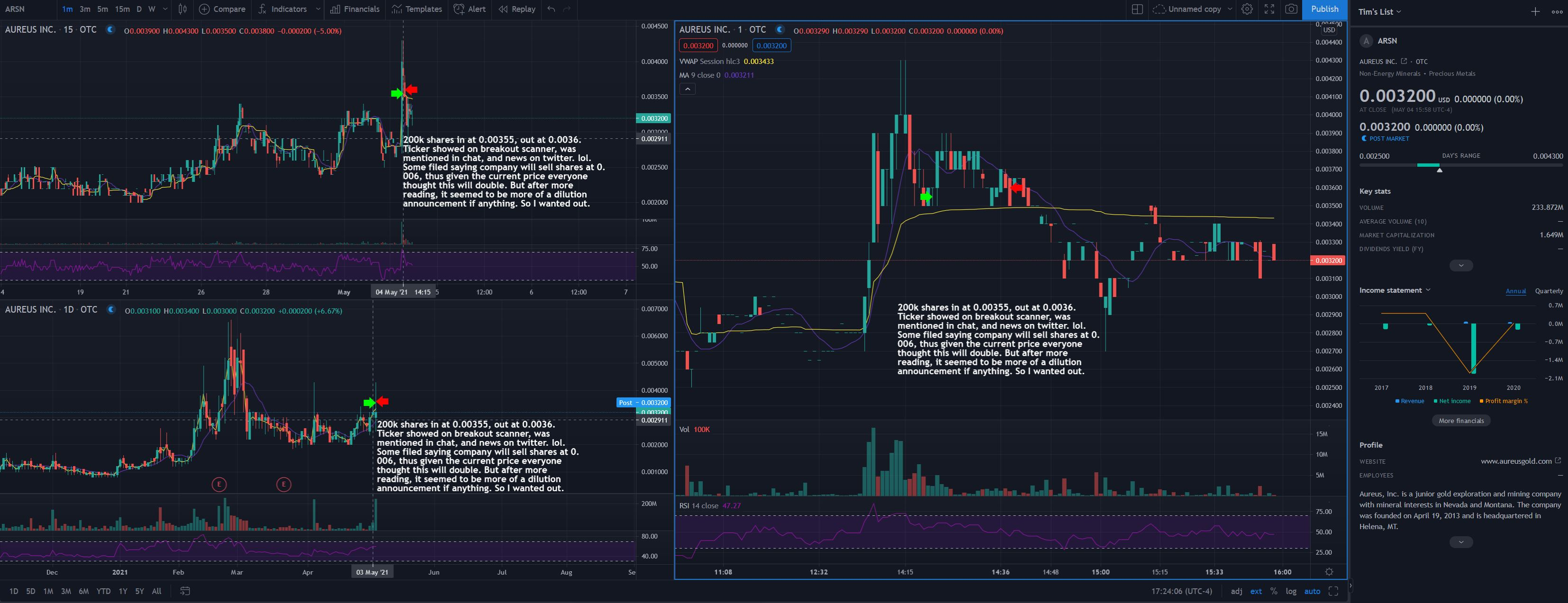 Ticker showed on breakout scanner, mentioned in chatroom, and spreading around twitter. Everyone thought it'll jump to 0.006 because of a company filing. So we thought it'll double in price. But wasn't moving once I got in. Soon people pointed out it was a dilution. Company had shares to be sold at 0.006, so I wanted out.