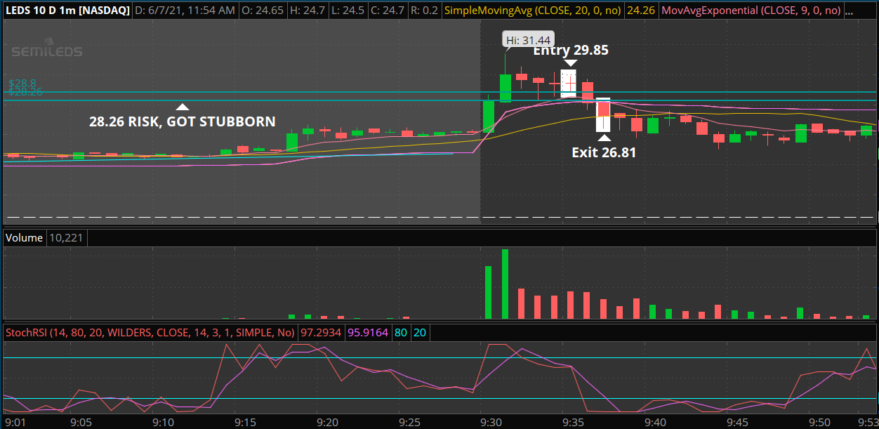 Missed my entry on this at 26.85 right out of the gate it just moved to fast. So I tried buying the pullback for a secondary push but it just ended up being a wash out in the morning. Definitely some FOMO/CHASING going on here, not at all happy with this trade. Also got very stubborn on my exit as I didn't get out at my stop. OVERALL BAD