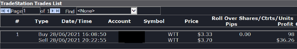 Testing a new strategy using tickers up high on the day and also using Moving Averages/Golden Cross. Took a small position on $WTT already up quite high on the day and later than I would normally trade in the day. Trying patience and not to get greedy. Wanted around 15-20% but settled for just over 10%.
