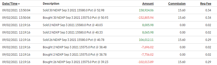 My first Nasdaq bull put vertical option spread. I put in two trades, one for 30 contracts at $1.55 premium and then again for the same strikes at $2.05 premium. Given the pattern, I was confident that the day of expiration would be an upswing. If not, I still had the premiums and I could get another credit for them to roll them over. My thesis was right on the upswing and I banked it all.