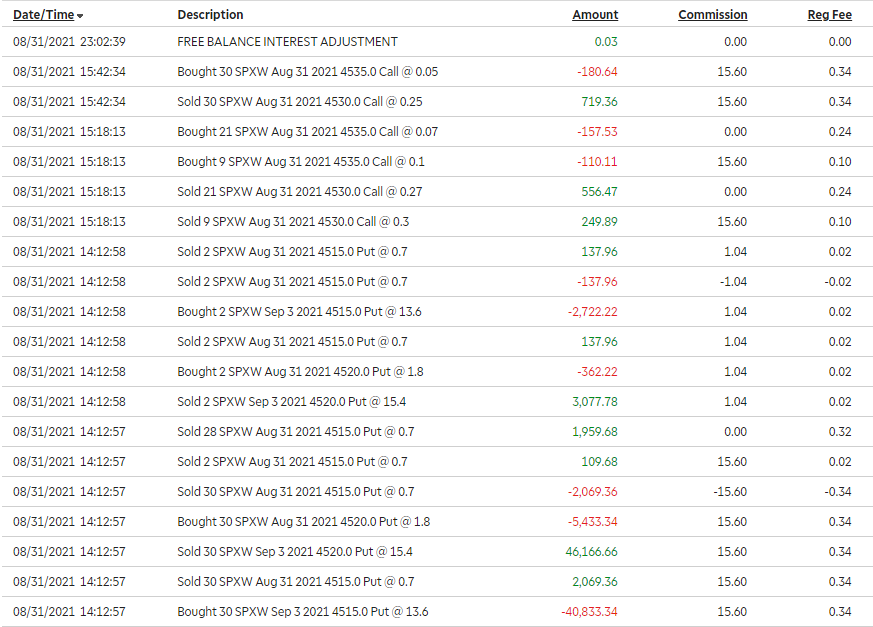 This was a bit confusing. First, ignore the calls in the image as I already accounted for them in another entry. Basically, I did a 4520/4515 bull put vertical spread for $0.50 premium. Then, the price was getting too close to my strike and I didn't have confidence in it so I rolled it over to Friday and got more credit for doing that. On Friday, it expired worthless so I kept all of the premium.