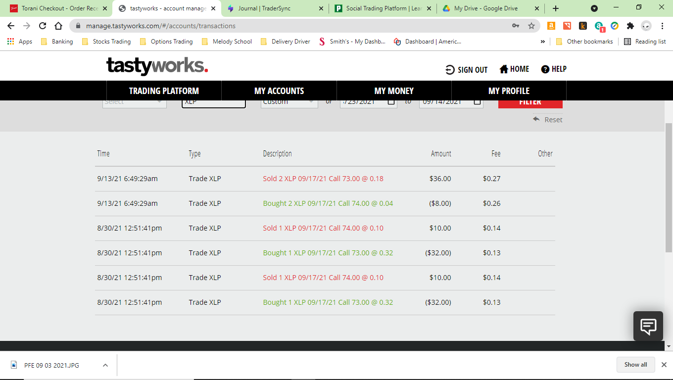 XLP SWING Entry Comments: CDS 73/74 expiry 09/17/2021. Max profit $156 max loss $44. Dark pool insights bullish above $72. Entered at $72.14. Goal is for price to move to at least $74 before Sept. 17. Used Tastyworks broker. This one didn't work out-traded sideways and tanked a few times. Didn't reach any of my targets by the last week so I cut it.