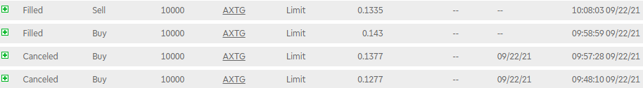 On this ticker, I was on the trail to trade this, so anxious that I chased and I lost. As you might see, I tried buying twice and couldn't get filled, which was frustrating. So, I tried a third time and got the fill but it was at the top and it started failing so I got out ASAP. I really wanted a piece of this action in the spike. Lesson: DO NOT CHASE!!!