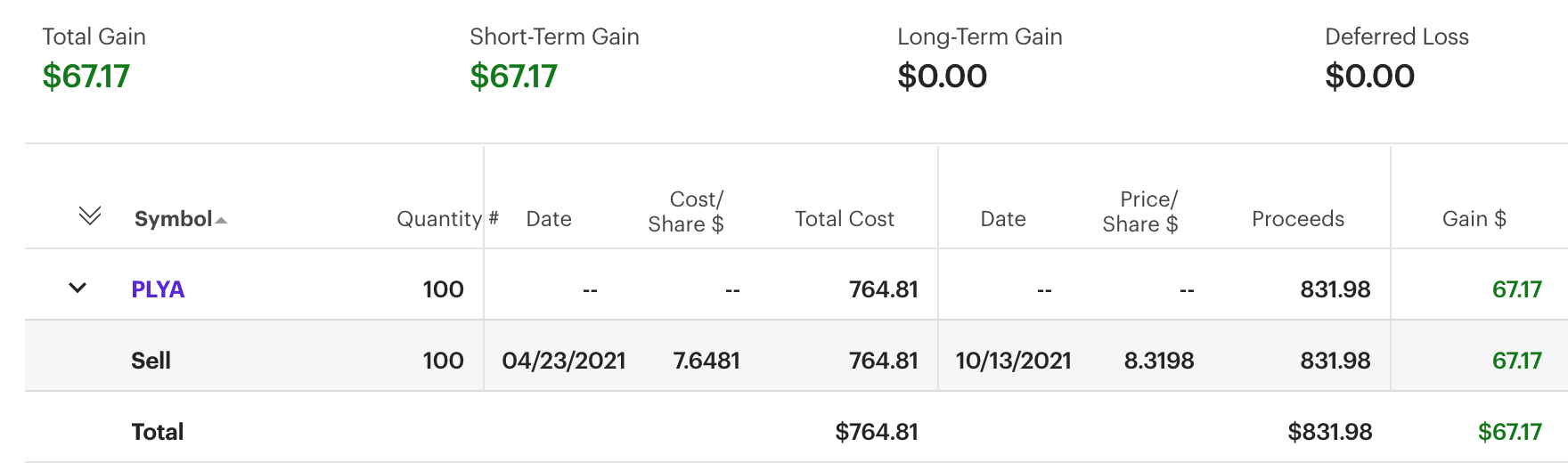 $67 Profit