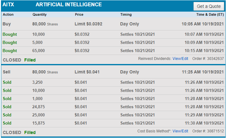 Saw News @ 9am with good hold on consolidation near .0375. Bought right after .038 b/o. Sold @ .041 when I saw low Vol < 100K and the fact that I had to get on a plane so I'm out because of that too although would have stayed if I didnt have to fly out. I didnt feel comfortable on a flight and not looking at my stocks especially when I saw the liabilities of 40M in the last SEC doc. I had to read that more carefully but I gotta go.