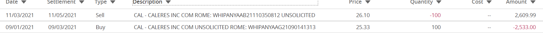 | Exit | 11/3/2021 | 26.10 |