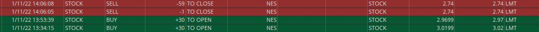 30 share starter at 3.02. Thinking a solid break of $3 could cause a decent run. Added another 30 shares at 2.97 to average down. Risking 2.90 since it was trading in a channel between 2.90 and 3ish. Goal was 5% around 3.14. Price reached 3.09 before an immediate rug pull down to sub-2.80. Managed to sell shares before it continued its downtrend.