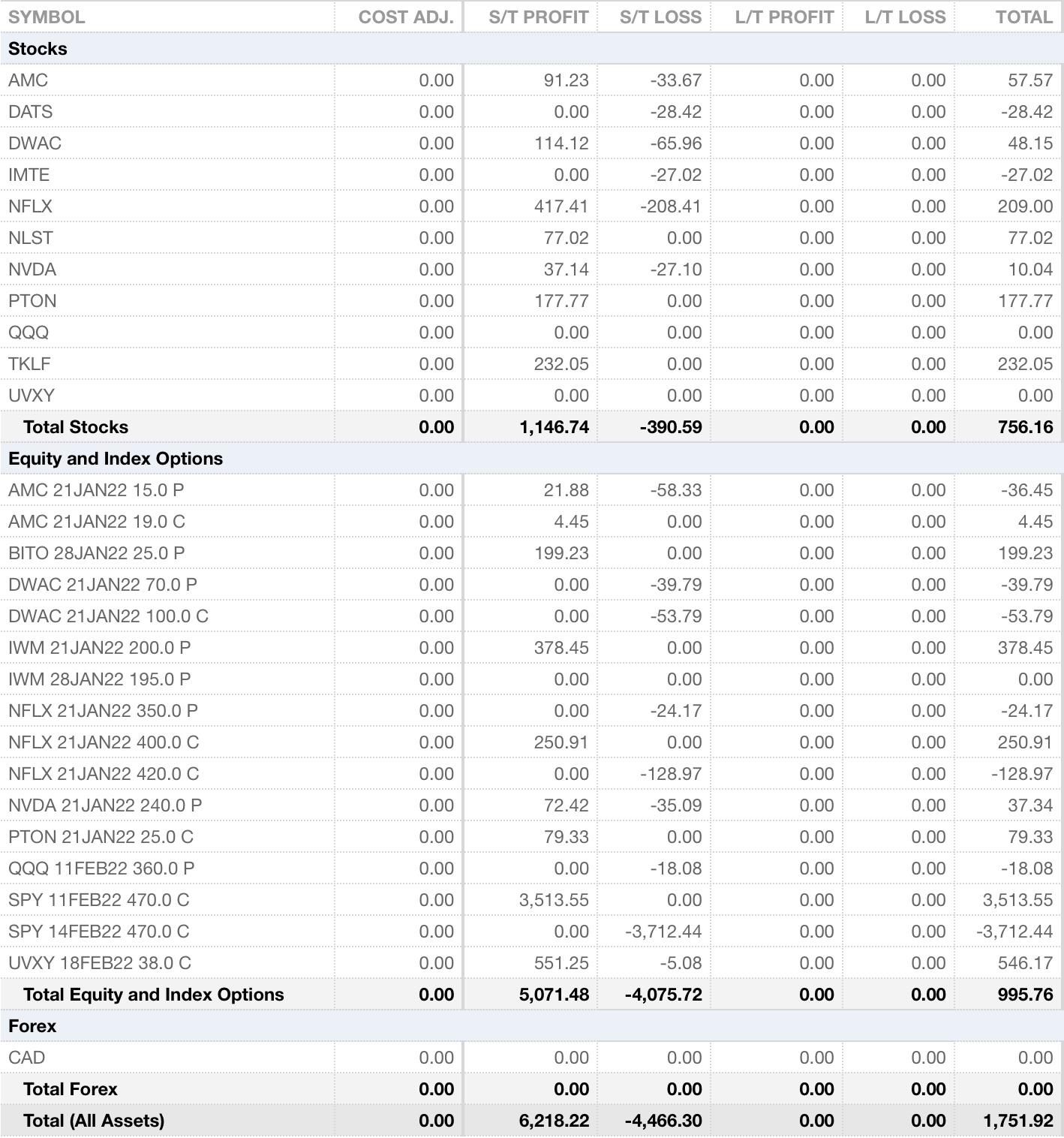 IB Trades: Jan 18-21 2022 Small Account Challenge. Used my experience from March 2020 to short the market in general. Jan 19 '22 was the key support crack day. I took profits of the short-term plays this week.
