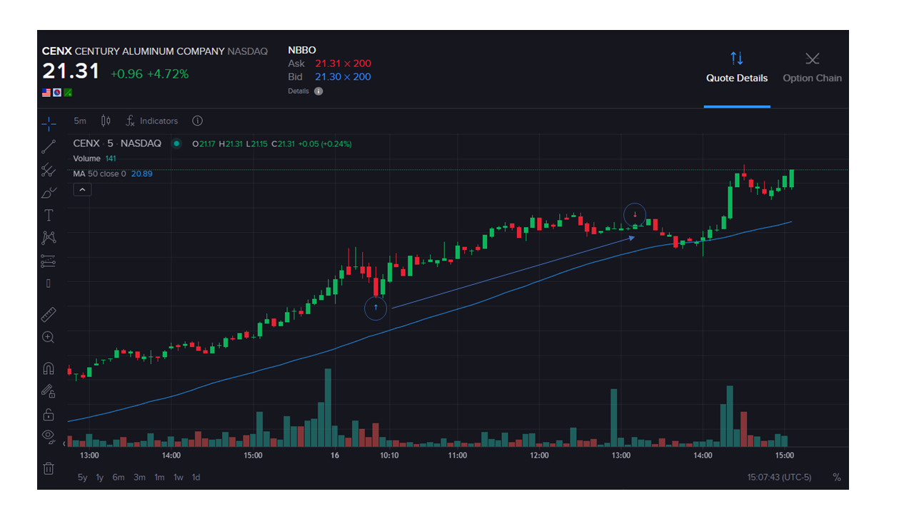 My first trade today on $CENX, while energy stocks is currently going up. Bought 40 shares @20.35 and sold @20.85. It was very nervous wrecking, but thanks to the learnings so far from "The Complete Penny Stock Course" and also from the mini Masterclass from Jason Leavitt. Still a lot to learn.