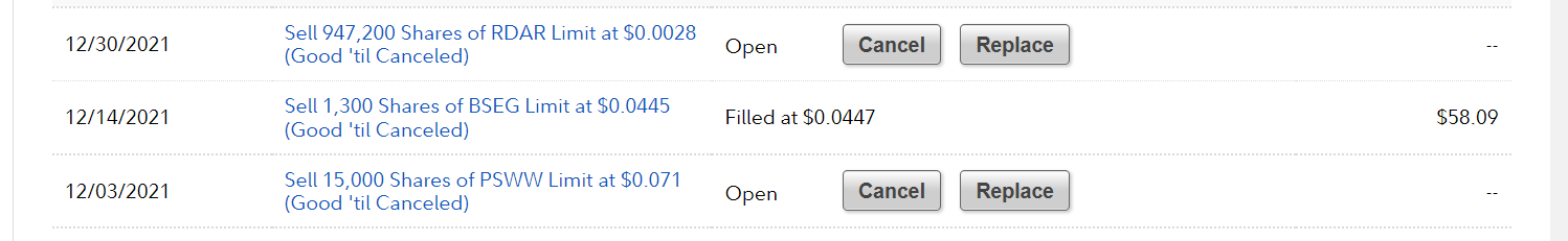 I got in this trade on the STTBN spiking on news. Dip bought 12/9 14:08 $0.0396 10% off the 14:07 $0.0439 HOD as it was moving fast. I immediately set a Limit Sell at $0.0515 for the 30% win. Price hit $0.054 at 14:13 and I wasn't executed ARGH! Started to become illiquid so I set a Limit Sell at $0.0445 support area and got out 12/10 8:30 $0.0445 0.8k shares and 2/23 9:44 $0.0447 1.3k shares.